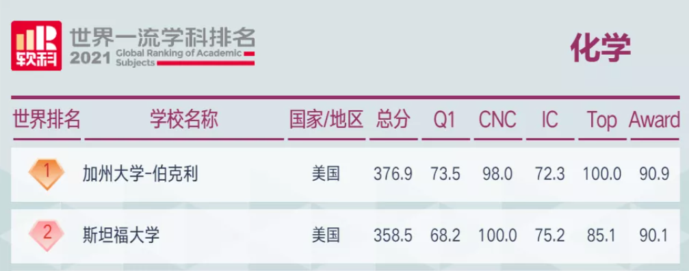 化学和化工两个学科上榜,其中化学工程排名全球101-150,化学排名全球201-300,均较2020年有大幅提升。