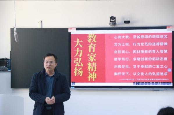 王国明指出,教师应注重思想政治方向的修养,将课堂教学与社会发展相结合,青年教师要勤学笃行、躬耕教坛,要把教育家精神与科学家精神结合起来,认真备课、站稳讲台,做好学生的引路人。