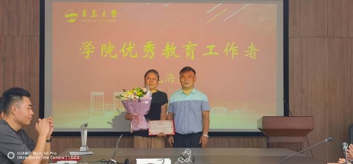 向老师们的辛勤工作和付出表示感谢。随后,院党委书记姜永杰向优秀教师、优秀教育工作者颁发荣誉证书,并赠送鲜花。