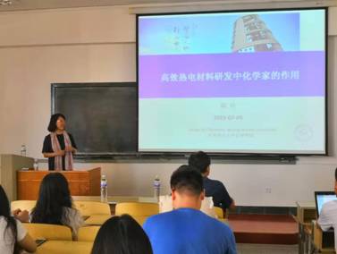 在本次报告中,陈玲教授首先向大家介绍了热电材料的研究原理及应用领域。陈教授研究团队成功构筑新颖Ba5Cu8In2S12化合物,低热导率与其结构中Cu原子有多种配位环境的特殊性相关(0.39–0.28 W m−1K−1)。同时陈玲教授将该类材料的潜在研究前景做了详细的描述。在报告中,陈教授结合自身的科研经历,分享自己在探索新体系、合成新物质、研究新性能等方面的见解,为学生如何提高科研素养,今后从事科学研究提出了宝贵的建议。