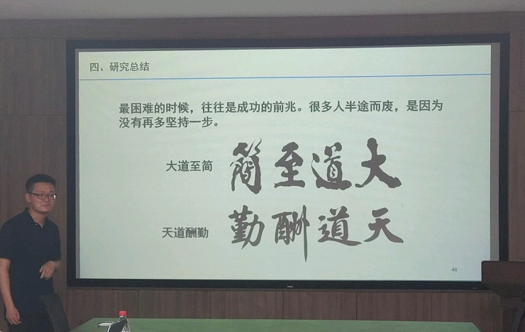 在分享的最后,何涛老师以自己读博时的亲身经历为引,激励同学们直面困难、坚持奋斗,不要半途而废。