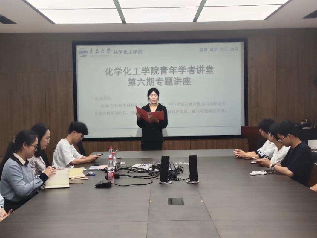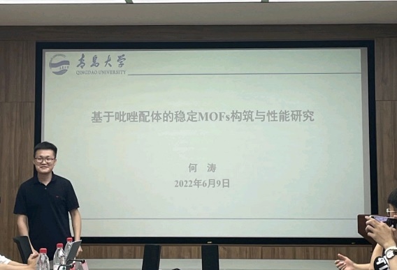 何涛老师从自己的学习工作经历谈起,结合自己的研究方向介绍了金属-有机框架材料的设计合成策略,主要是利用含氮的吡唑配体构筑稳定的金属有机框架材料,并对所得材料进行结构和功能调控,同时介绍了稳定的金属有机框架材料在吸附、催化等领域的应用前景。他用生动有趣的语言使参会同学对金属-有机框架材料有了更加深入的了解。
