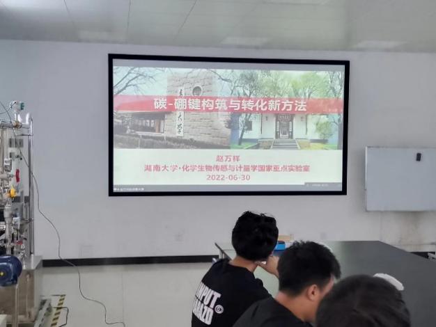 硼原子的“缺电子”特性及其相关物理化学性质而广泛应用于功能材料、有机合成、医药、农药、生物等领域。尽管有机硼化学经过半个多世纪的发展,但依然纯在诸多问题。赵万祥教授以“碳硼键构筑与转化新方法”为题,详细介绍了近年来在:碳-硼键构筑和转化的新反应,拓宽有机硼化合物的来源的渠道;发掘碳-硼键构筑和转化的新策略;发展新型硼试剂,开拓有机硼化合物应用等领域最新研究进展,引起同学们的极大兴趣,提高了科学研究的热情。