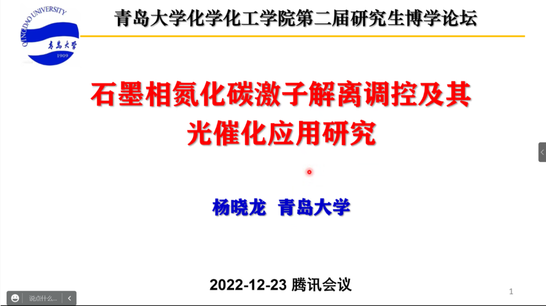 为进一步提高凯发娱乐(中国)官方网站 研究生的科技创新能力,弘扬科学精神,提升研究生教育培养质量,12月23日,凯发娱乐 通过腾讯会议举办了第二届研究生博学论坛。论坛以“聚焦绿色化学,促进可持续发展”为主题,凯发娱乐 党委书记姜永杰、副院长毕赛、院内外专家学者以及凯发娱乐 研究生参加了论坛。论坛由青年教师联合会会长魏刚主持。