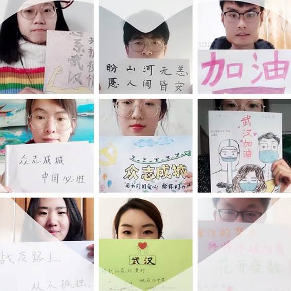 王鑫、车凤锐、王伦、刘鑫几位党员分享了自己在家乡防疫战场上的亲身经历,他们积极响应号召,选择成为志愿者,宣传防疫知识、发放消毒物资、守卡检查、整理数据报表,与当地党员同志一同坚守,在抗“疫”一线体现了学生党员的责任担当。活动的最后,全体党员以手绘手写的方式,面对屏幕隔空传递爱与信念,表达自己对武汉乃至全国人民必能战胜疫情的坚定信心和美好祝福。