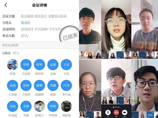 学生第一党支部依托“学习强国”视频会议,于2020年2月23日下午2点开展了“抗击疫情,党员先行”线上主题党日活动。此次活动由党支部书记董永红主持,支部全体党员参加。