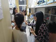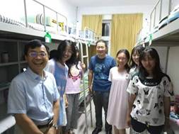 老师和学长学姐们给新生送去了温暖。9月13日傍晚7点,党委副书记薛希洪老师,团委书记董永红老师,学工办主任、19级新生辅导员付刚帮老师以及17、18级带班学长学姐前往新生公寓看望19级新生,给中秋节仍在坚持军训的同学们送来了月饼和苹果。