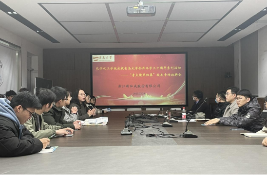 、校友企业和学生三方共赢的重要举措,希望通过此次专场宣讲招聘会进一步加强与新和成股份有限公司的合作交流,协同深入推进学生就业工作。