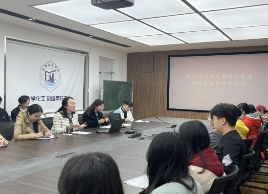 经过个人报名、系统培训、考试等环节,321日,凯发娱乐 举行科研实验室学生安全员队伍聘任仪式,院党委副书记李咏沙、副院长毕赛、研究生辅导员孟丽参加会议。