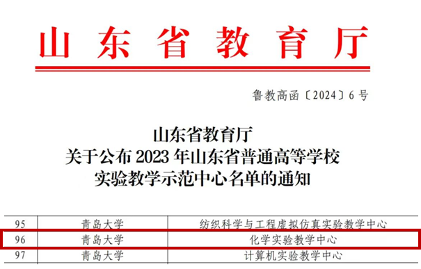 化学实验教学中心入选“山东省普通高等学校实验教学示范中心”。